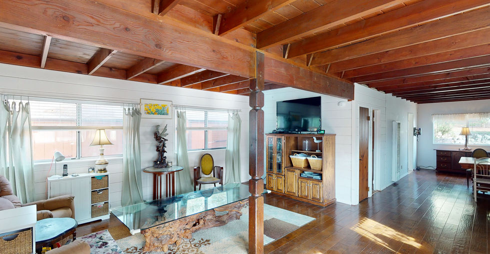 Nestled on Lodge Hill, this home features original wood doors and hardware, shiplap walls, wood ceilings and beams, large open living and dining space on 5 lots. Enter on the newer deck and open to the first floor great room with dining space, half bath, kitchen and laundry closet. Warm wood floors, some newer windows, and a kitchen with all appliances included with an extra freezer and built in baker's cabinet. Up the staircase to the 3 bedrooms and main full bath with wood floors in the hallway and beamed and wood ceilings above. The first bedroom has original wood windows and shiplap walls. The large full bathroom has double sinks and soaking tub/shower combo. The larger main bedroom has walk in closet, shiplap walls, and views of pine and oak trees. Adjoining is a separate room being used as a bedroom. This house is on a corner lot and includes two APN's at 8,727 sq.ft. Lots of room to garden, create a dream home, and be in beautiful Cambria Pines by the Sea! Turn right on Ardath to the Marine Terrace, ocean front and East West Ranch with dog friendly walking and hiking. Our central coast has beautiful Highway One, elephant seals, wineries, vineyards and a short drive to several communities. Come make this home your own on the Central Coast.